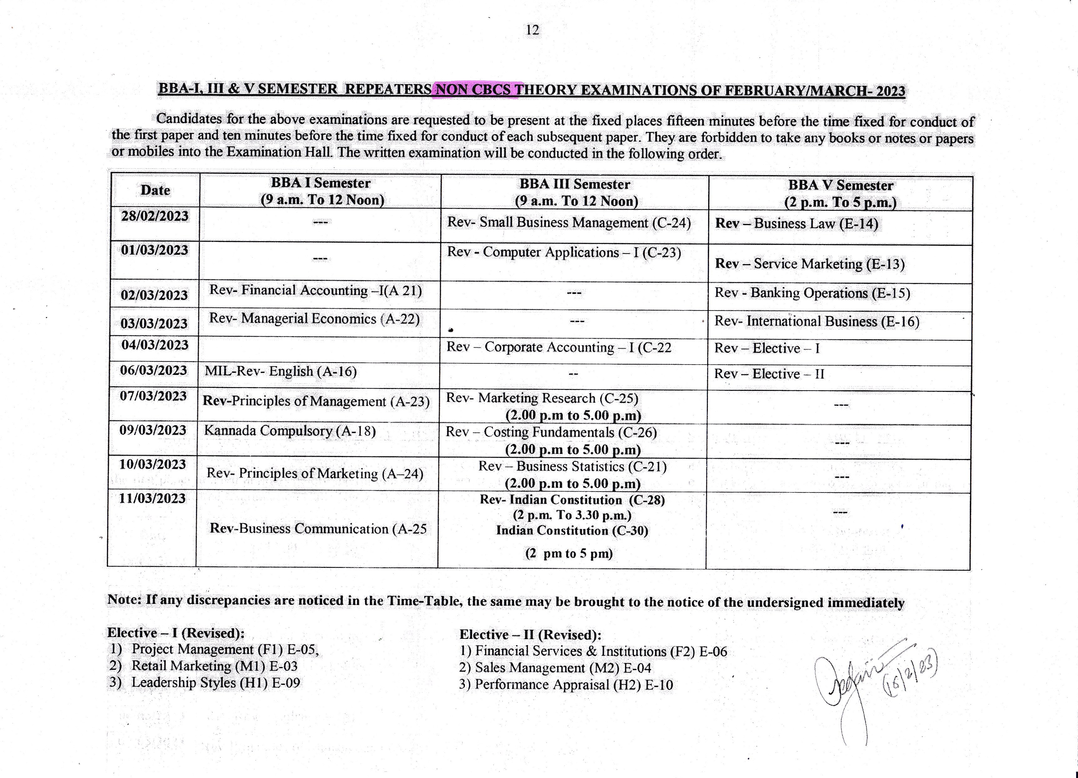 BBA I,III & V Semester (Revised) Feb/March 2023 Exam Time Table. |